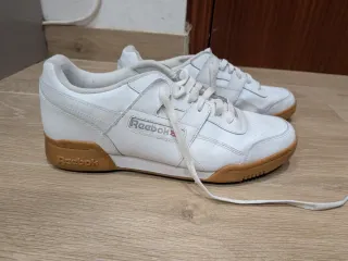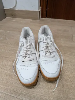 Zapatillas deportivas de la marca Reebok. - Diseño clásico en color blanco. - Suela de goma marrón. - Cierre con cordones.