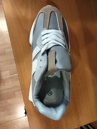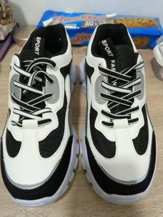 Zapatillas deportivas sin estrenar. - Diseño moderno en negro, blanco y gris. - Talla 38.5. - Son de Temu