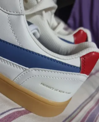 Zapatillas de vestir Calvin Klein con un diseño moderno y elegante. - Combinación de blanco, gris y detalles en azul marino. - Logo de Calvin Klein en el lateral. Traidas de Estados unidos ,un ragalo que por mala suerte no es mi talla