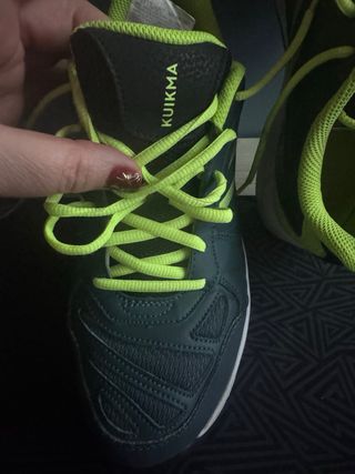 Zapatillas padel deportivas con cordones. - Diseño en color azul verdoso con detalles en verde lima. - Cierre de cordones. - Suela de goma.