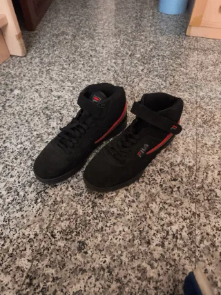 Zapatillas altas de la marca FILA, prácticamente nuevas, usadas 2 veces. Cierre de lengüeta y cordón, cubren todo el tobillo. Precio negociable.