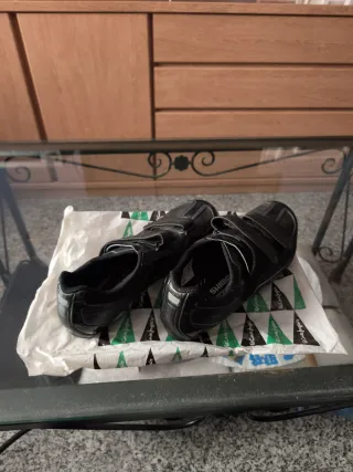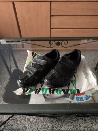Zapatillas de ciclismo Shimano en color negro. Atención, no incluyen las calas debido a que las que tenía estaban en mal estado, sí incluye los tornillos para fijar las calas. Uso moderado, pero en general en buen estado. Talla 47. Precio negociable.