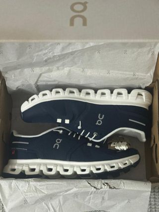 Zapatillas deportivas de la marca On Running. - Diseño en color azul con detalles en blanco. - Suela blanca con tecnología CloudTec.