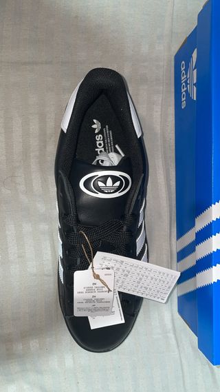 Zapatillas Adidas Campus en color negro y blanco. Un clásico del estilo urbano. - Diseño icónico con las tres rayas. - Detalle CAMPUS en dorado. - Suela de goma. - Cierre de cordones.