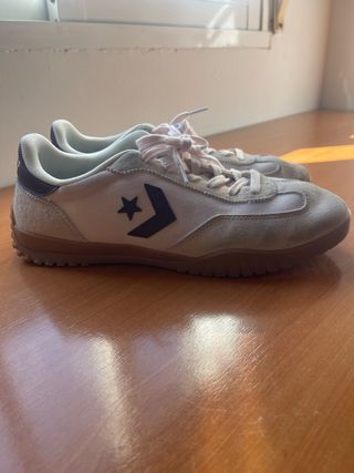 Zapatillas altas de la marca Converse en color morado y blanco. Un diseño moderno y llamativo. Están nuevas, 1 solo uso. - Cierre de cordones. - Suela de plataforma. - Detalle de logo en el lateral.