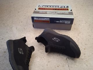 Zapatillas Skechers de color negro, modelo Relaxed Fit con Memory Foam. - Diseño moderno y cómodo. - Suela antideslizante. - Perfectas para el trabajo o el día a día. Ideal hostelería