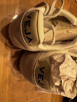 Zapatillas de la marca Veja en talla 44. - Color beige y verde. - Diseño moderno y cómodo. Son un 45 pero vienen pequeñas