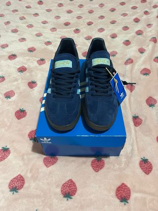 Zapatillas Adidas Spezial Handball en un llamativo color azul marino. - Diseño clásico con las icónicas tres rayas. - Detalle Spezial en el lateral. - Suela de goma para mayor durabilidad.
