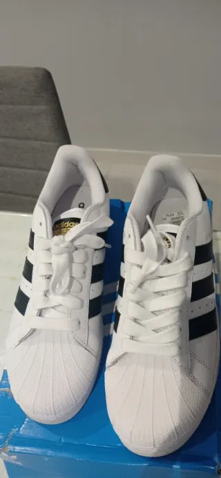 Zapatillas deportivas Adidas Superstar en color blanco con detalles en negro. Un clásico para el día a día. - Diseño icónico con las tres rayas. - Puntera de goma. - Cierre con cordones.