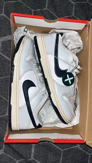 Zapatillas Nike Dunk en tonos azul y blanco. Un diseño clásico y versátil. - Parte superior de cuero. - Suela de goma. - Cierre con cordones. Se venden porque no son mi talla