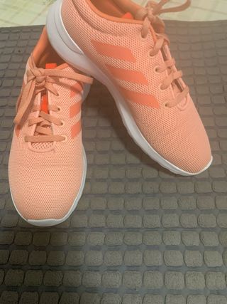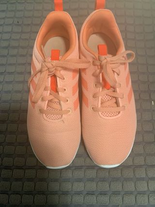 Zapatillas deportivas Adidas en tonos naranja y rosa. Perfectas para el día a día. - Diseño moderno y ligero. - Tres rayas características de la marca.