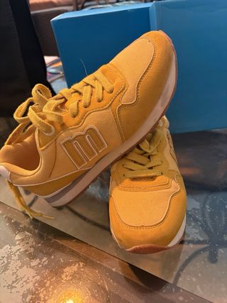 Zapatillas deportivas de estilo casual en color amarillo. - Diseño moderno con detalles en contraste. - Suela de goma para mayor agarre. - Cierre con cordones.