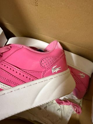 Zapatillas de la marca Lacoste para mujer, talla 39,5 - Diseño moderno y deportivo. - Combinación de colores vibrante. - Detalle del icónico logo del cocodrilo.