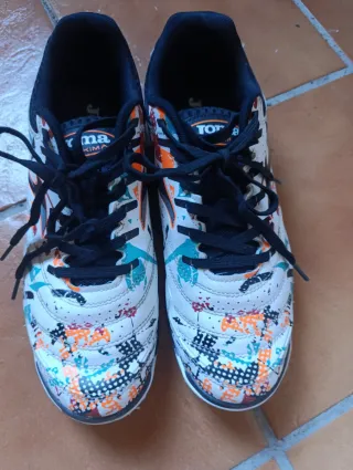 Zapatillas deportivas Joma con un diseño llamativo y original. - Exterior blanco con estampado multicolor. - Cierre con cordones negros. - Suela de goma. Usadas 2 veces impecables.