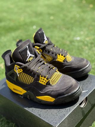 Zapatillas Air Jordan 4 100% originales. Buen estado, uso normal. Precio original 200 €. Color negro y amarillo. - Diseño clásico Jordan 4 - Detalles amarillos - Logo Jumpman en la lengüeta