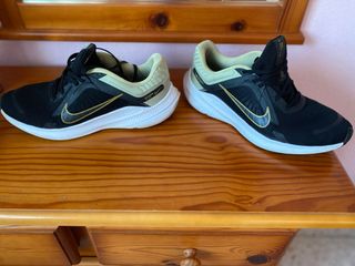 Zapatillas deportivas Nike Quest 5. - Color negro con detalles dorados. - Talla 46.