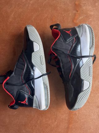 Zapatillas deportivas Jordan en color negro con detalles en rojo. Diseño moderno y deportivo. - Cierre con cordones. - Suela de goma. - Detalle de logo en la lengüeta.