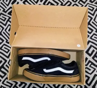 Zapatillas Vans con suela de goma marrón. - Diseño clásico con banda lateral blanca. - Cierre de cordones.