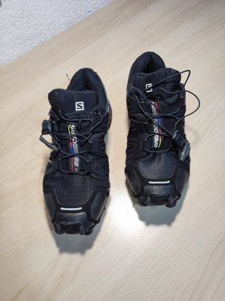 Zapatillas Salomon Speedcross 4 para niño, en color negro. Ideales para actividades al aire libre. Lavadas y sin uso posterior. Se encuentran en buen estado.