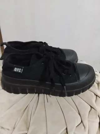 Zapatillas de plataforma con cordones. - Diseño de lona. - Detalle de etiqueta NYC en el lateral. - Suela gruesa y dentada.