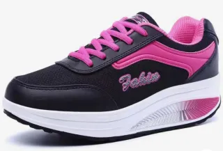Zapatillas deportivas con un diseño moderno y llamativo. - Combinación de malla transpirable y detalles sintéticos. - Cordones de color rosa vibrante. - Suela gruesa con plataforma para mayor comodidad. - Detalle de logo en el lateral.