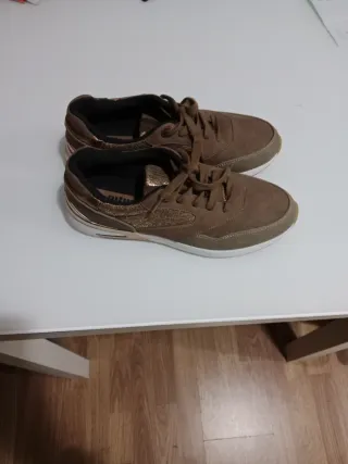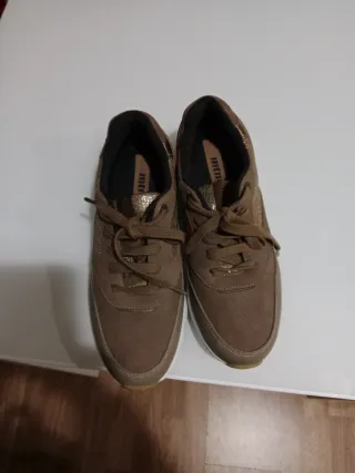 Zapatillas de la marca Mustang en talla 38. - Diseño en tonos marrones y dorados. - Acabado brillante en algunas zonas. - Usados un par de veces