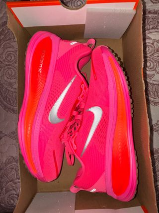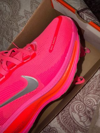 Zapatillas de running Nike Vomero 18 en vibrantes tonos de rosa y naranja. - Diseño deportivo y moderno. - Detalles reflectantes para mayor visibilidad. - Suela con amortiguación para mayor comodidad.