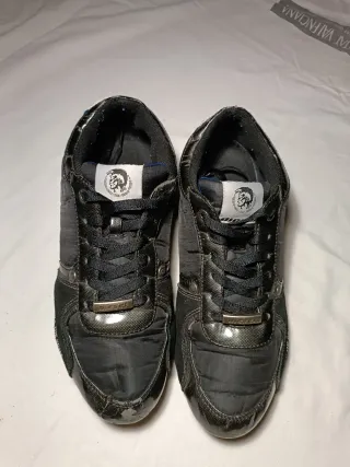 Vendo zapatillas Diesel originales, color negro, talla 42. Están usadas, con signos normales de uso, pero todavía funcionales y cómodas. Ideales para uso diario. - Cierre con cordones. - Detalle metálico en la lengüeta con el logo. - Logo de Diesel en la lengüeta interior.
