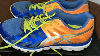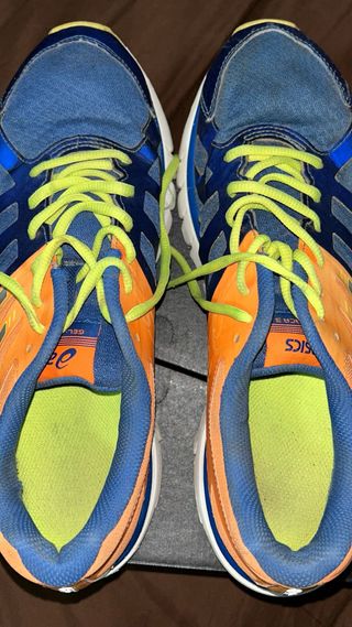 Zapatillas deportivas usadas, ideales para running. - Suela de goma con buen agarre. - Diseño deportivo y llamativo. - Cordones de ajuste. - Talla 43,5.
