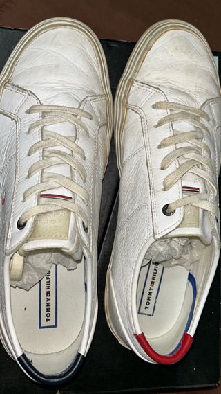 Zapatillas de la marca Tommy Hilfiger en color blanco. Perfectas para el día a día. - Detalle de logo en el lateral. - Ribete trasero en color azul marino. - Ribete trasero en color rojo.