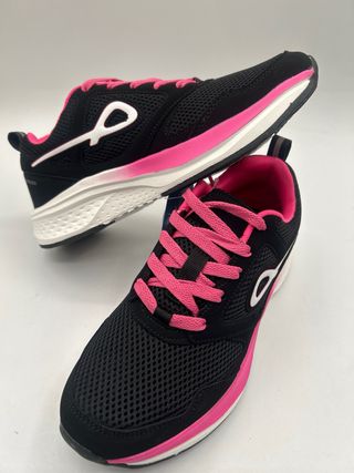 Zapatillas de mujer en perfecto estado, casi nuevas. - Diseño moderno con detalles en lila. - Interior acolchado en rosa. - Cordones blancos. - Suela blanca.