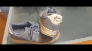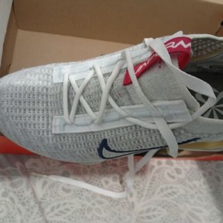 Zapatillas Nike en talla 43. Un diseño llamativo con letras grandes. - Diseño con letras grandes. - Combinación de colores plateado y blanco.