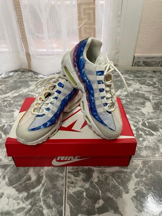 Vendo zapatillas Nike Air Max 95 en muy buen estado, poco uso. Talla 38,5. Bambas unisex. Incluye caja original. Producto 100% oficial. Más fotos sin compromiso. Hago envíos.