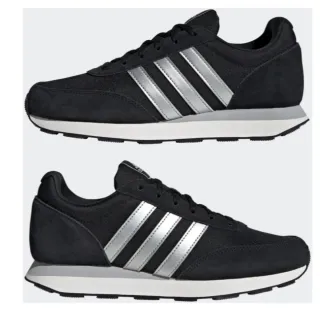 Zapatillas deportivas Adidas con un diseño clásico y moderno. - Combinación de colores negro y plateado. - Tres rayas laterales icónicas de Adidas.