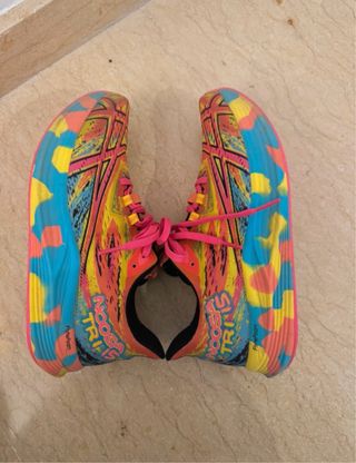 Zapatillas deportivas ASICS Noosa Tri 15 con un diseño vibrante y llamativo. - Estampado multicolor. - Cordones rosas. - Suela con tecnología FlyteFoam. - Running - Como nuevos, muy buen estado (los vendo por no usarlos) - Talla 39 *Originales*