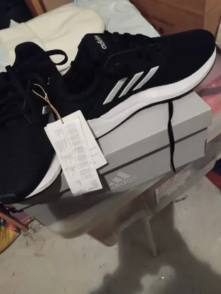 Zapatillas deportivas Adidas. - Diseño moderno en color negro con detalles blancos. - Cierre de cordones. - Suela de goma.