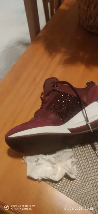 Zapatillas Guess con un diseño moderno y llamativo. - Combinación de negro y detalles dorados. - Estampado de logo Guess. - Suela gruesa y robusta. usado una vez.