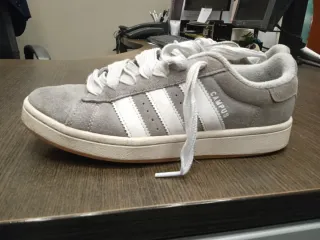 Zapatillas Adidas modelo Campus en color gris y blanco. Un clásico para el día a día. Buen estado y suela con muy poco desgaste. - Exterior de ante y detalles en piel. - Suela de goma. - Cierre con cordones.