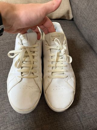 Zapatillas deportivas de estilo casual. - Diseño en blanco con detalles en beige. - Cierre con cordones. - Logo de Reebok en el lateral y la suela.