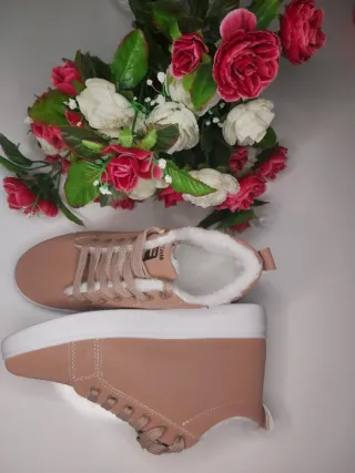 Zapatillas altas de lona en color rosa, talla 38. - Cierre con cordones blancos. - Suela de goma blanca. - Detalle de estrella en el lateral.