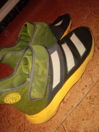 Zapatillas deportivas con un diseño moderno y llamativo. - Combinación de colores verde y amarillo. - Cierre de velcro. - Detalle de logo circular en el talón.