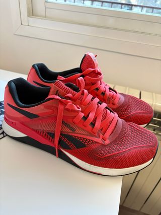 Zapatillas deportivas Reebok en color rojo y negro, diseñadas para entrenamiento de alta intensidad. - Diseño moderno y funcional. - Materiales transpirables para mayor comodidad. - Suela robusta para soporte y estabilidad.