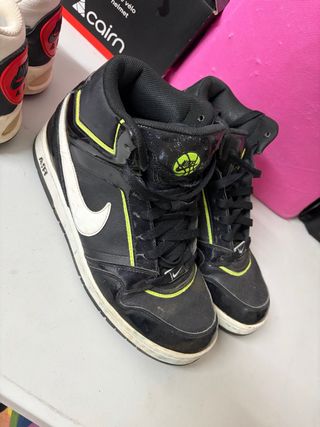 Zapatillas altas de la marca Nike. - Diseño en color negro con detalles en blanco y verde lima. - Cierre de cordones.
