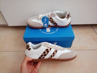 🫸🫸Precio fijo, por favor no ofertas 🫷🫷 Zapatillas barefoot super bonitas en tendencia, en color blanco con laterales en animal print de leopardo, estilo casual urbano. cómoda y la moda! IMPORTANTE: es un 40 que viene pequeño de tallaje, la plantilla mide 25,6 CMS por lo que recomiendo mejor para un 39 o 39,5 👣👣 Envío rápido 🚀 🛸 Más en mi perfil Barefoot es calzado de máxima comodidad por su puntera más ancha, suela flexible y antideslizante , el cambio es radical