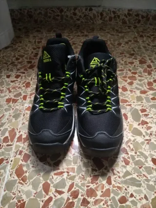 Zapatillas deportivas de la marca Paredes en color negro con detalles en verde. Aunque no tiene etiqueta son nuevos. Talla 46.