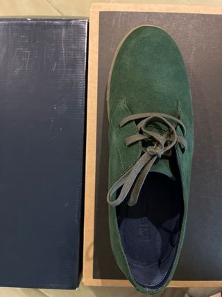 Zapatillas de ante en color verde con suela marrón. - Detalle de logo naranja en el lateral. - Cierre con cordones.