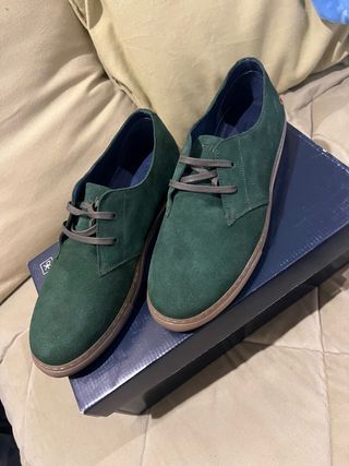 Zapatillas Pompeii de ante en color verde azulado, talla 42. Se encuentran en perfecto estado, casi nuevas. - Material exterior de ante. - Suela de goma. - Cierre con cordones.