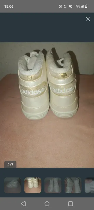 Zapatillas altas de estilo deportivo. - Diseño en blanco con detalles dorados. - Cierre con cordones. talla 37