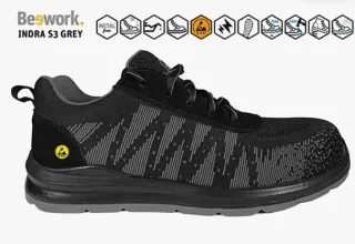 Zapatilla de seguridad INDRA ESD S3S con un diseño moderno y funcional. - Tallas 40 y 41 / (A 20€ EL PAR) - Parte superior de malla transpirable. - Suela de goma antideslizante. - Puntera de protección. - Plantilla antiperforación.