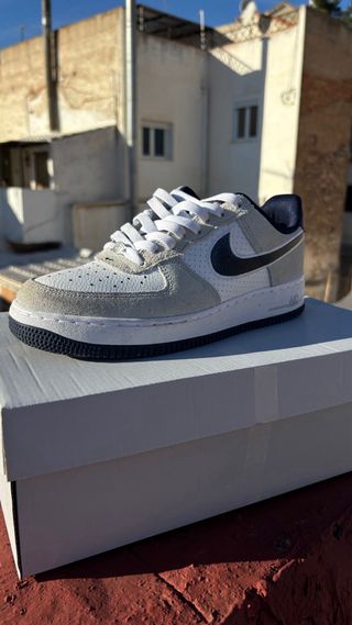 Zapatillas Nike Air Force 1 en tonos grises y blancos. Un clásico reinventado con un diseño moderno. - Parte superior de ante y piel. - Detalles en contraste. - Suela de goma. - Cierre de cordones.